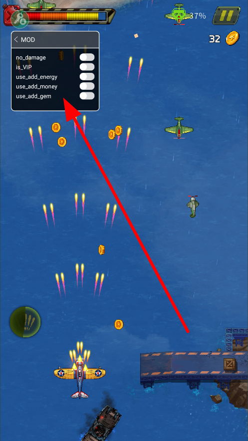 2、在戰(zhàn)斗過程中,可開啟作弊菜單,利用其中的功能,比如獲得不受傷、增加鉆石資源等效果,助力戰(zhàn)斗,讓飛機在面對敵人攻擊時更具優(yōu)勢。