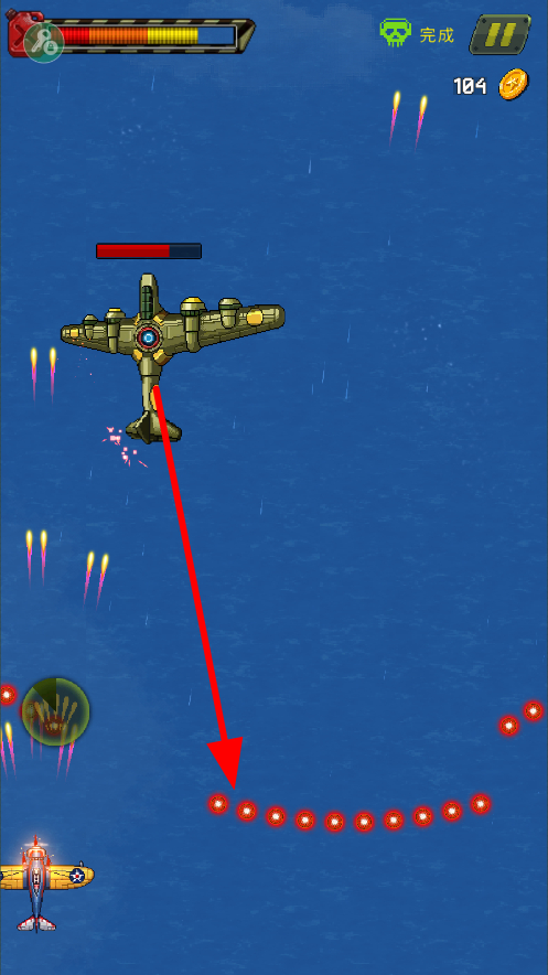 3、操控飛機在畫面中移動,躲避敵人發(fā)射的子彈,尤其是面對敵人密集的子彈攻擊時,要靈活調(diào)整飛機位置,避免被擊中,保障飛機的安全。