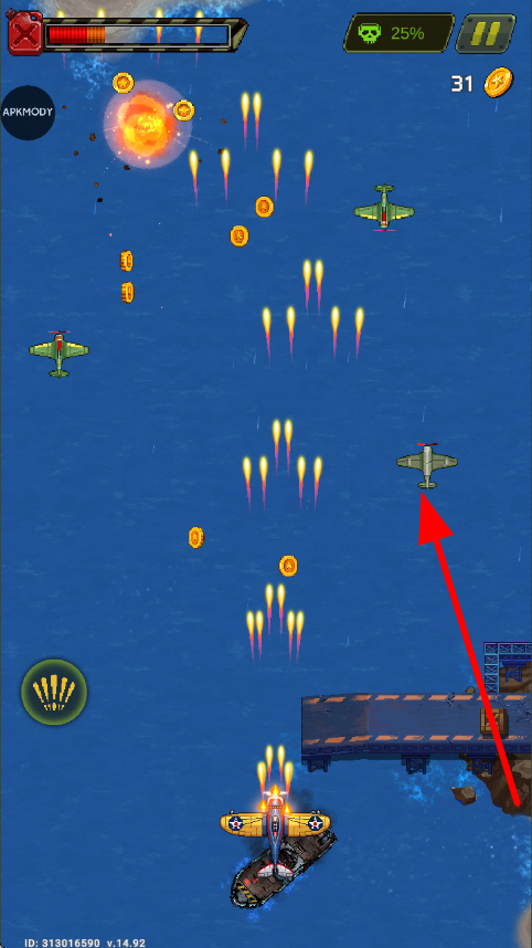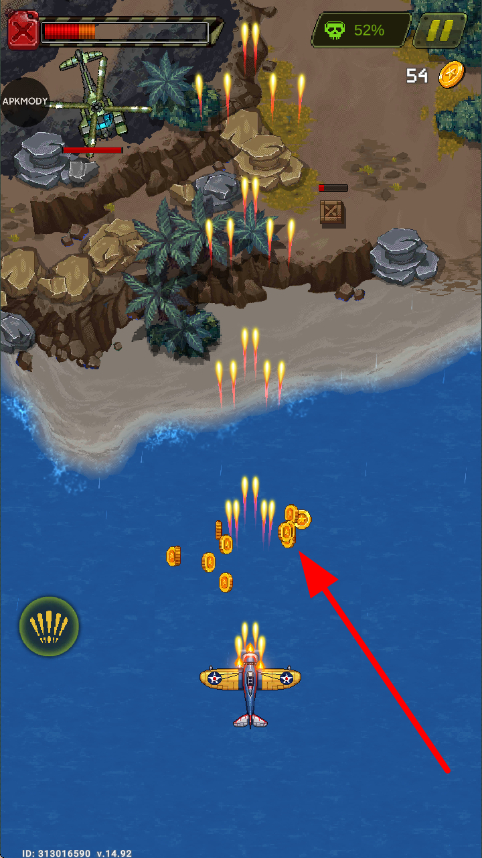 3、攻擊敵人或完成某些任務(wù)時,會有金幣掉落,操控飛機(jī)移動到金幣附近,收集金幣,這些金幣可用于后續(xù)的一些操作或解鎖內(nèi)容。