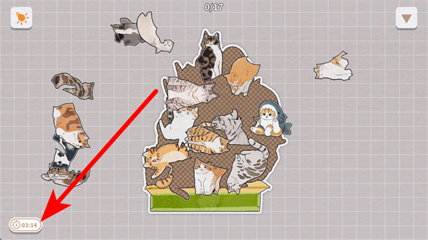3、在拼接過(guò)程中,要時(shí)刻關(guān)注時(shí)間,合理安排操作節(jié)奏,爭(zhēng)取在計(jì)時(shí)結(jié)束前,順利完成貓咪圖案的拼接,獲得游戲成功。