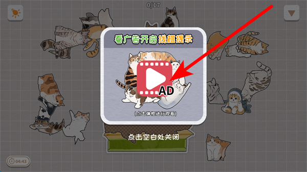 2、若需要提示,可選擇觀看廣告,開(kāi)啟線框提示功能,借助線框能更清晰知曉碎片的對(duì)應(yīng)位置,方便拼接。