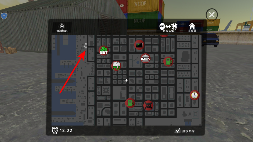 1、查看地圖界面,了解自身位置和任務點如BET、BANK等標識,規(guī)劃行動路線,高效完成關卡任務。