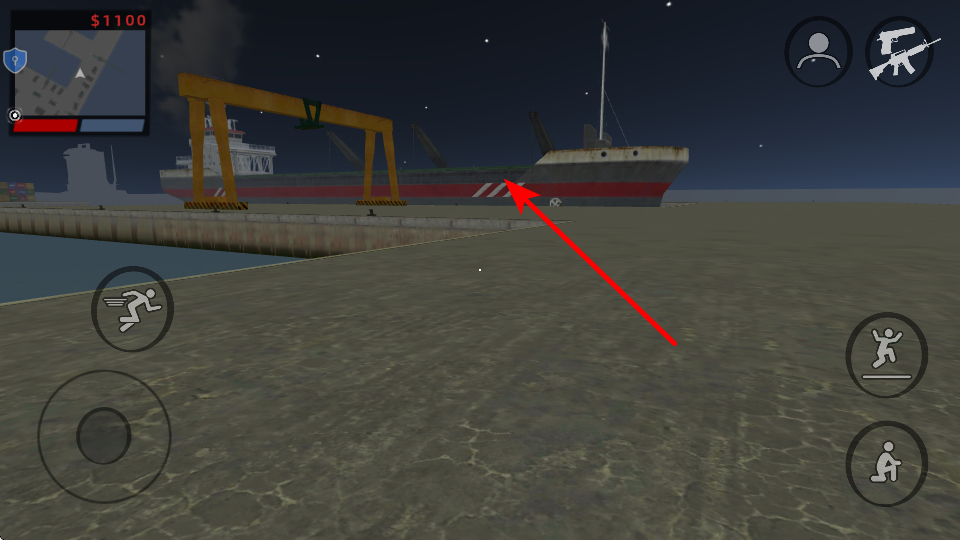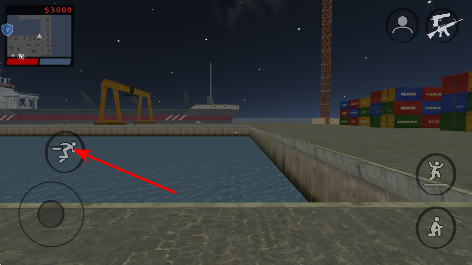 3、點擊奔跑圖標,可讓角色快速移動,在港口等場景中迅速抵達目標地點,躲避敵人或搶占先機。