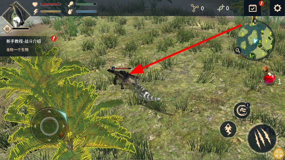 4、操控恐龍與其他生物戰(zhàn)斗,運(yùn)用攻擊和技能,擊敗對手,完成新手教程等戰(zhàn)斗任務(wù),在恐龍世界中生存與成長。