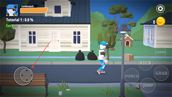 1、進入游戲教程關卡,通過屏幕左下角的虛擬方向鍵控制角色移動。