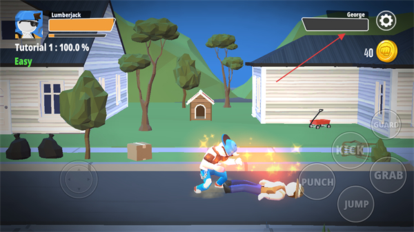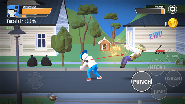 2、遇到敵人后,點擊屏幕右側的PUNCH按鈕,對敵人進行攻擊,比如連續(xù)攻擊可出現(xiàn)2HIT!。