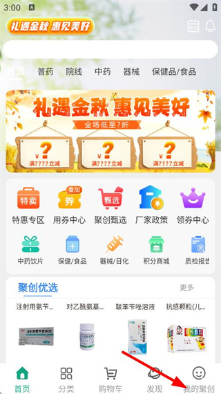 1、在聚創(chuàng)醫(yī)藥網(wǎng)首頁,點(diǎn)擊我的聚創(chuàng),進(jìn)入個人頁面。