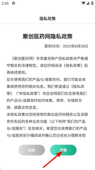 1、在隱私政策的頁面,點擊同意,進入APP首頁。