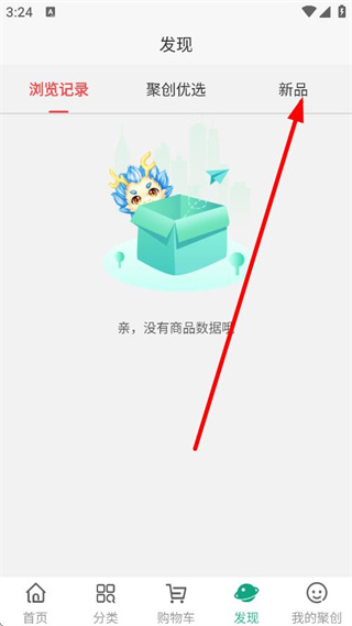 3、在發(fā)現(xiàn)頁面,點擊新品,進入新品列表頁面。