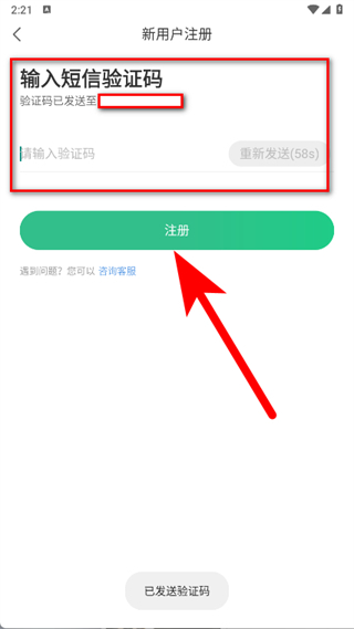 4、填寫收到的驗證碼后,點擊注冊,完成注冊。