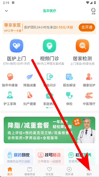 1、打開泓華醫(yī)療APP,點擊底部我的。