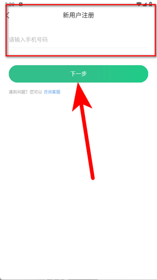 3、在新用戶注冊頁面,輸入手機號碼后點擊下一步。