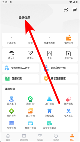 2、在我的頁面,點擊登錄注冊。