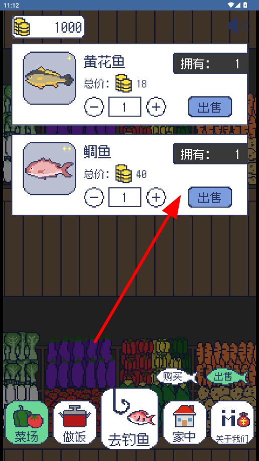 4、在菜場(chǎng)的出售界面,可以調(diào)整要出售魚(yú)的數(shù)量,然后點(diǎn)擊出售獲取金幣。