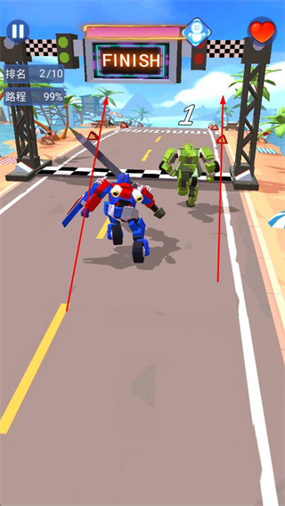 4、全力沖刺,向著終點FINISH線前進,爭取率先到達終點,贏得比賽勝利。