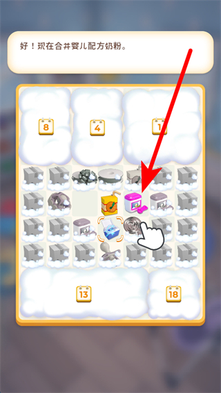 2、參與物品合并任務(wù),比如合并嬰兒配方奶粉,通過合并操作獲取資源,為寶寶的生活提供保障。