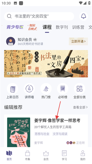 將知識(shí)內(nèi)容按人文社科、自然科學(xué)、藝術(shù)文化等領(lǐng)域梳理成完整體系,課程與解讀層層遞進(jìn),用戶可跟隨體系逐步學(xué)習(xí),實(shí)現(xiàn)知識(shí)的系統(tǒng)化積累。