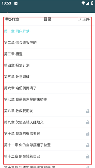 4、在完整目錄頁面,可查看小說各章節(jié),并選擇章節(jié)進行閱讀。