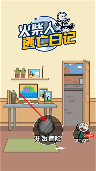 1、開(kāi)始冒險(xiǎn)點(diǎn)擊開(kāi)始冒險(xiǎn)按鈕,進(jìn)入火柴人逃亡的游戲場(chǎng)景。