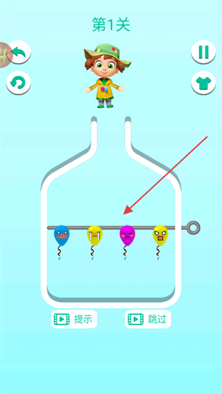 2、在關(guān)卡里,可以看到氣球被欄桿擋住了去路,思考該如何操作,才能讓它們順利移動。