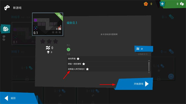 1、選擇關(guān)卡后,點(diǎn)擊開(kāi)始游戲,進(jìn)入塔防戰(zhàn)場(chǎng)。