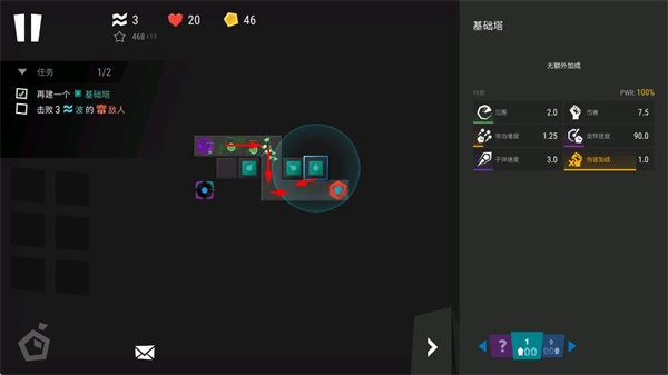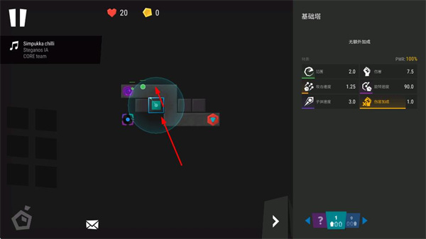2、在地圖區(qū)域放置基礎(chǔ)塔,利用塔的攻擊功能抵御敵人入侵。