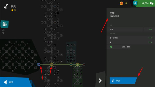 4、進(jìn)入研究界面,升級(jí)傷害等屬性,提升塔的戰(zhàn)斗力。