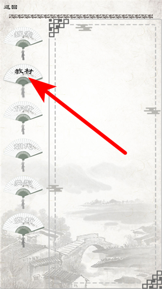 2、進(jìn)入學(xué)習(xí)分類(lèi)頁(yè),左側(cè)扇形選項(xiàng),點(diǎn)擊教材。