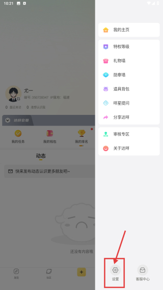 3、在功能列表中,點擊設置選項,進入賬號與隱私設置頁面。