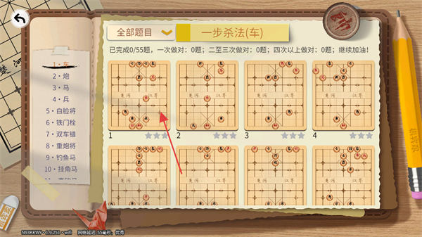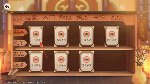 2、在關(guān)卡選擇頁面,點(diǎn)擊心儀關(guān)卡如一步殺法,可進(jìn)入該關(guān)卡的題目列表頁面。