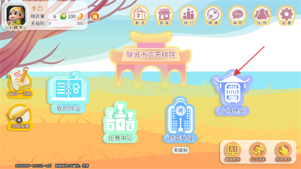 1、打開棋弈家,點(diǎn)擊小將練兵,可進(jìn)入象棋練兵的關(guān)卡選擇頁面。