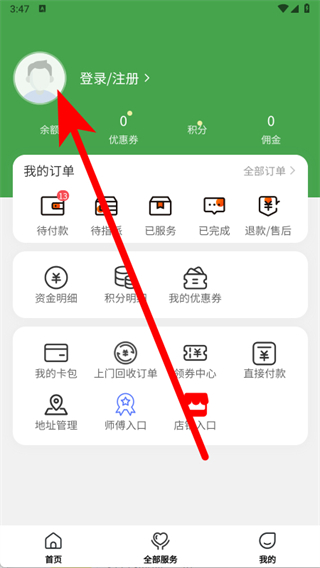 2、在個(gè)人中心頁(yè)面,點(diǎn)擊登錄注冊(cè)區(qū)域,進(jìn)入手機(jī)號(hào)登錄界面。