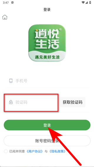 4、輸入收到的短信驗(yàn)證碼,勾選后,點(diǎn)擊登錄按鈕,完成賬號(hào)登錄。