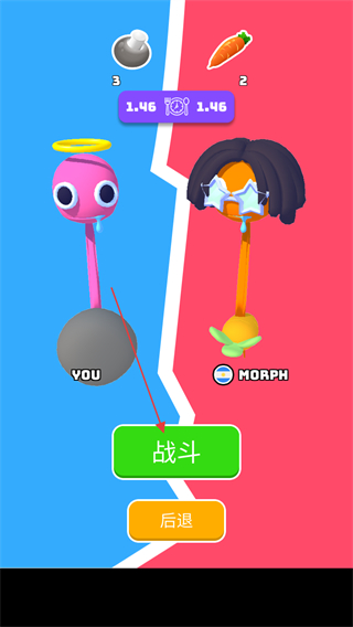 1、對比雙方體重和道具,點(diǎn)擊戰(zhàn)斗按鈕,開啟與對手的體重比拼。