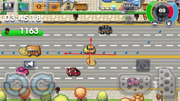 2、在道路行駛時(shí),操控車輛收集金幣,避開其他車輛,保持行駛節(jié)奏。