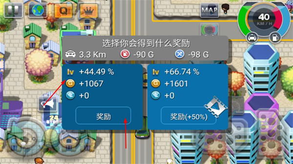3、完成階段任務(wù)后,選擇獎(jiǎng)勵(lì),獲取經(jīng)驗(yàn)和金幣,提升車輛屬性。