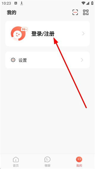 2、在個人頁面,點擊登錄/注冊,進入登錄頁面。