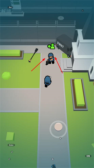 1、在場(chǎng)景中操控角色射擊敵人,靈活移動(dòng)躲避攻擊,保障自身安全。