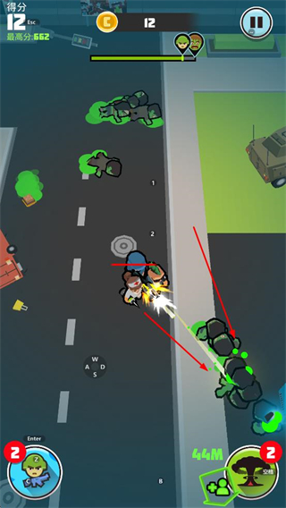 4、戰(zhàn)斗中操控角色射擊僵尸,積累得分,提升游戲成績(jī),保障自身生存。