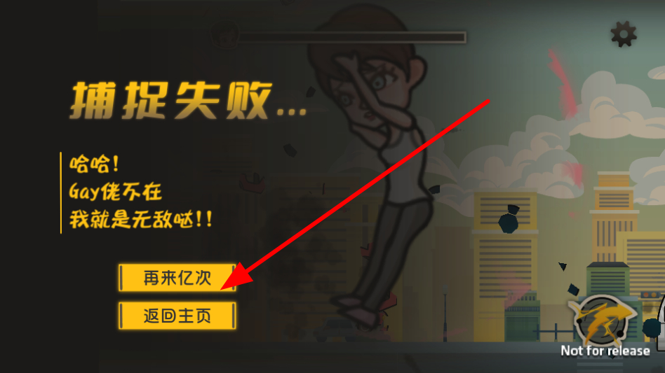 4、若捕捉失敗,點擊再來億次按鈕重新挑戰(zhàn),不斷嘗試直至成功,持續(xù)堅守守護城市的使命。
