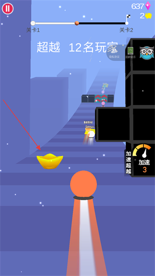 2、通過左右劃動屏幕來控制小球在賽道上的移動方向。