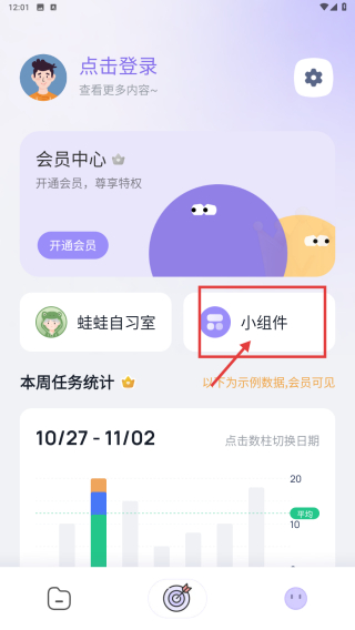 2、在功能頁(yè)面,點(diǎn)擊小組件選項(xiàng),進(jìn)入小組件頁(yè)面。