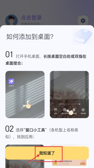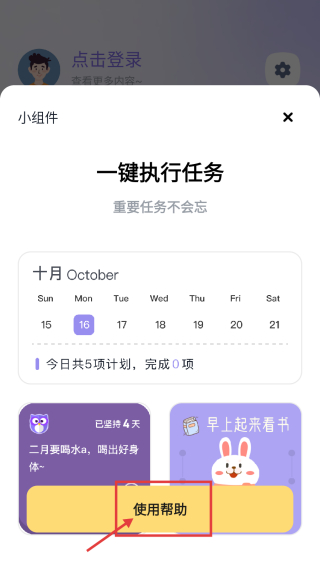 3、在小組件頁(yè)面,點(diǎn)擊使用幫助選項(xiàng),查看如何添加到桌面的說(shuō)明。