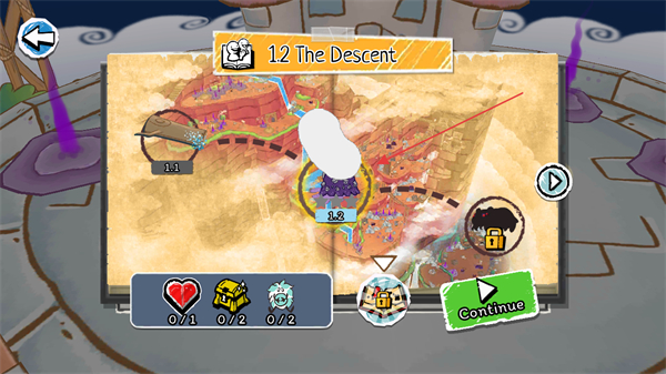 1、點(diǎn)擊左下角的地圖,選擇已經(jīng)解鎖的關(guān)卡進(jìn)行闖關(guān)。