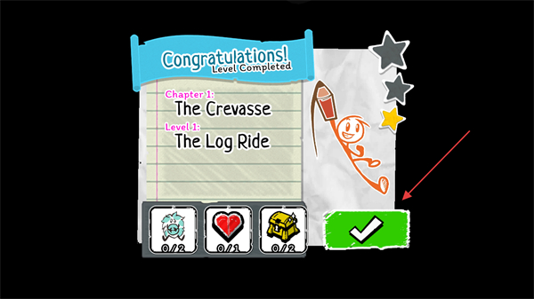 4、每個(gè)關(guān)卡會(huì)根據(jù)角色最后的生命值和獲取到的資源數(shù)量來(lái)進(jìn)行評(píng)分,點(diǎn)擊綠色勾勾返回主頁(yè)。