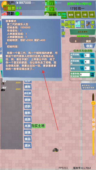 1、選擇富二代的娛樂人生故事模式,利用初始資金購買土地,開展產(chǎn)業(yè)布局。