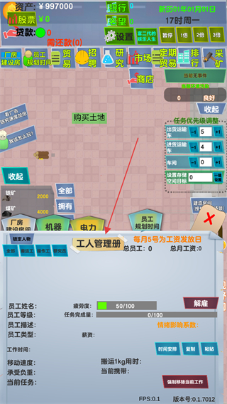 2、進(jìn)入工人管理界面,雇傭員工,根據(jù)需求管理員工,開展生產(chǎn)經(jīng)營。