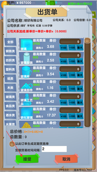 4、查看出貨單,確認(rèn)貨物種類、單價(jià)等信息,點(diǎn)擊接受完成出貨,獲取收益,推動(dòng)公司發(fā)展。