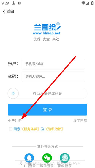 2、在登錄頁(yè)面,點(diǎn)擊免費(fèi)注冊(cè),進(jìn)入注冊(cè)頁(yè)面。