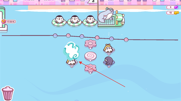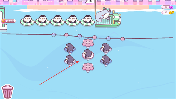 1、在游戲場景中,觀察企鵝的分布,通過操作讓企鵝移動,收集道具或完成排列。